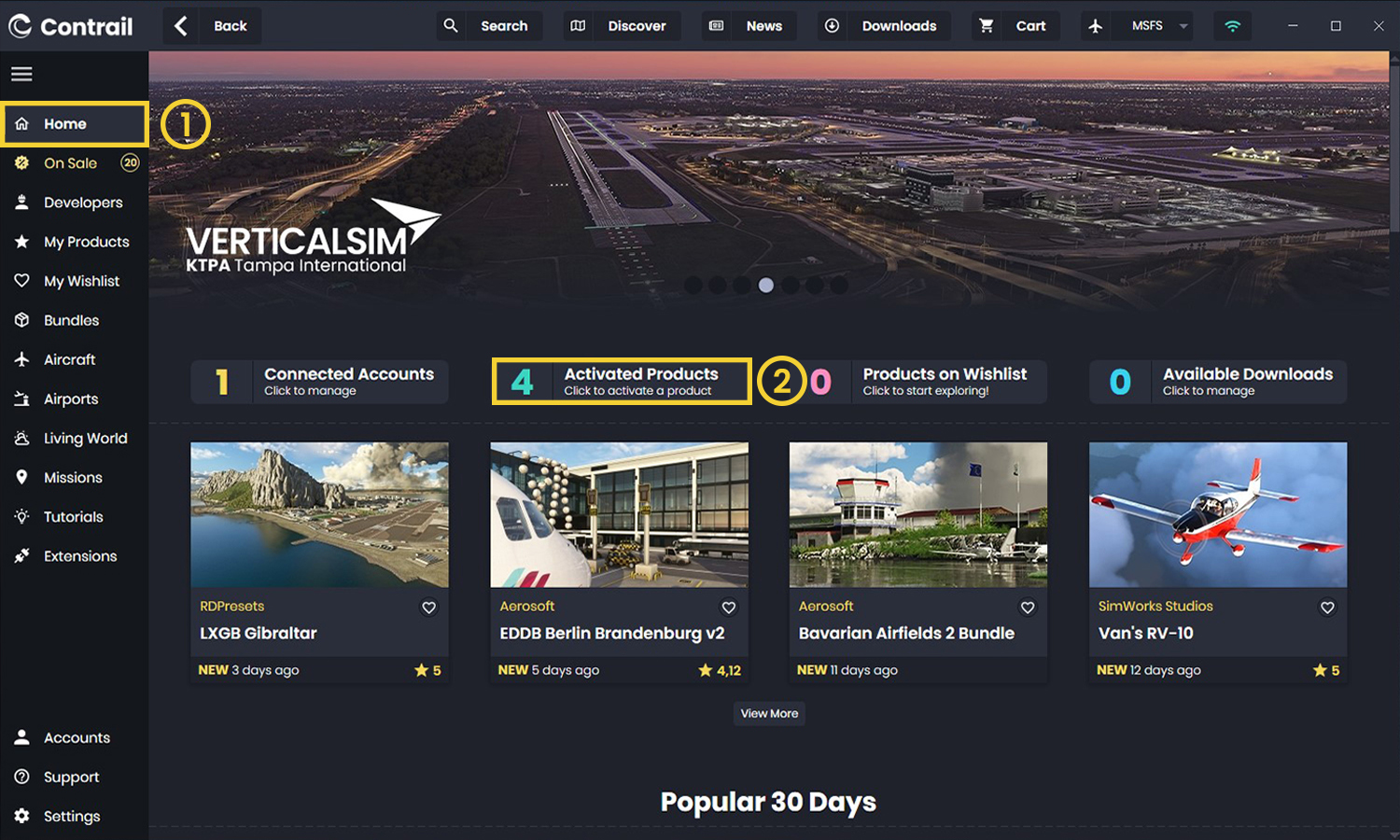 If you have a serial number for a product, you can easily activate it in the Contrail app. Simply navigate to the Home tab and click on Activated Products.