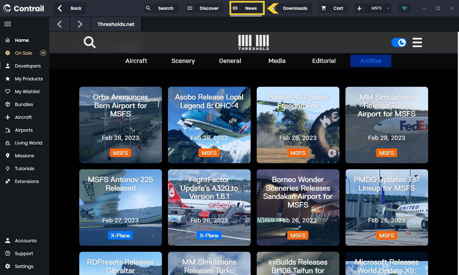 Stay up-to-date with the latest news by clicking on News in the top bar of the app. This section provides access to the latest news articles provided by Thresholdx.net