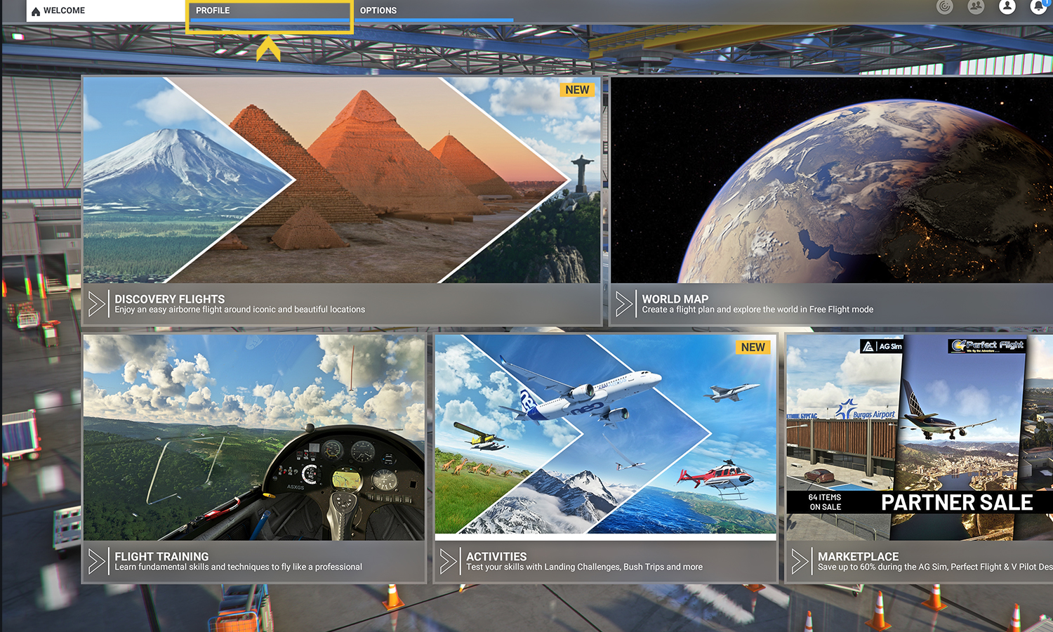 Launch Microsoft Flight Simulator and Click on Profile in the top menu.